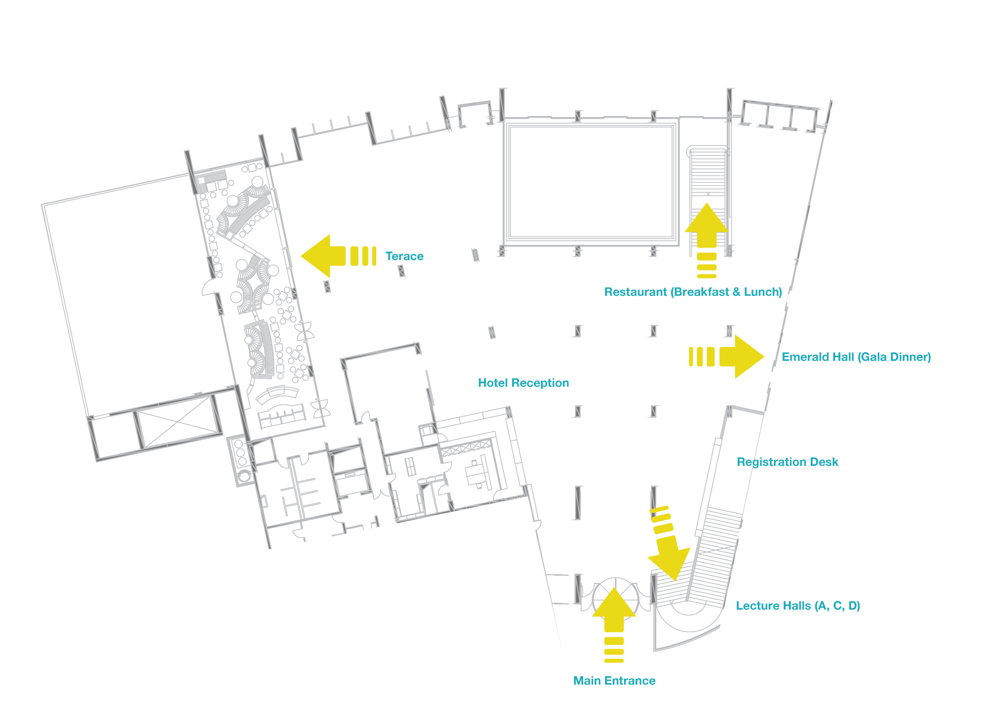 Below you can find the floor plan of the lobby to help you navigate easily to all conference locations.